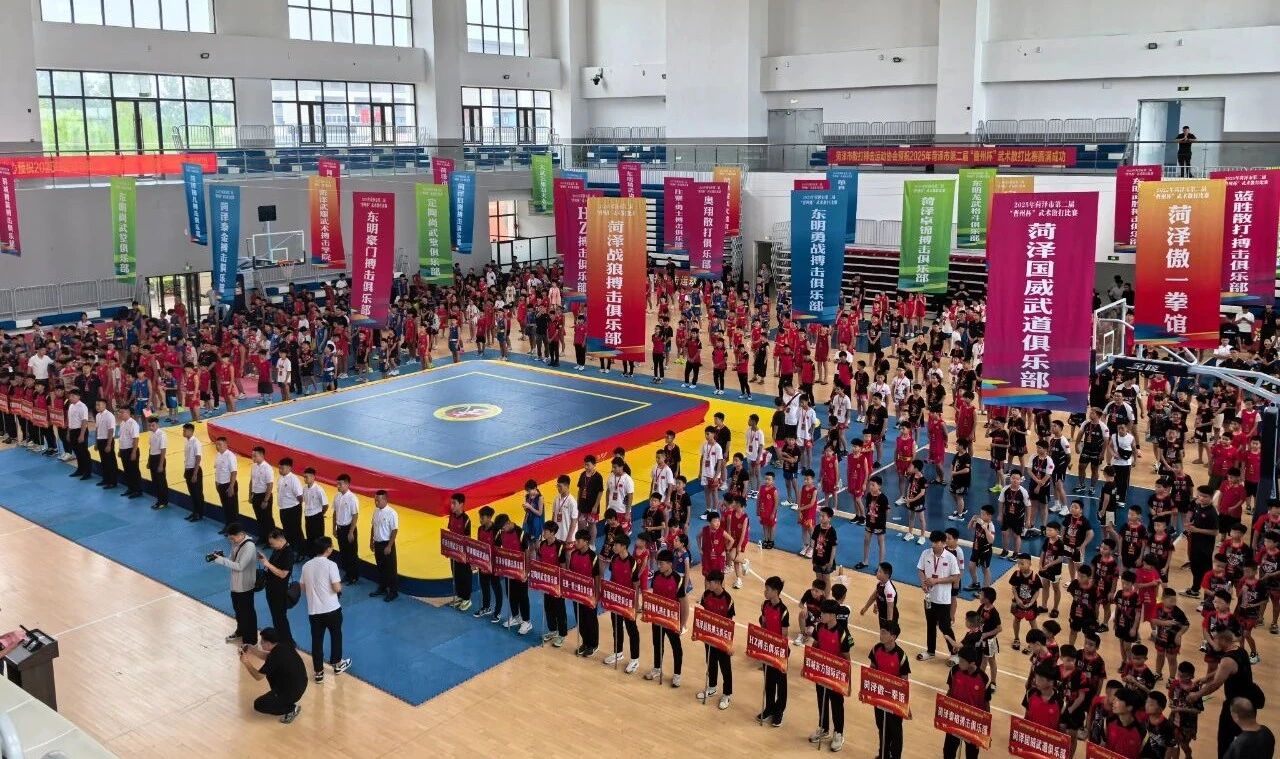 金风送爽,武韵激扬。2025年8月1日上午,菏泽市第二届“曹州杯”武术散打比赛在国家高水平竞技体育后备人才培养基地——菏泽市曹州武术学校(人民路校区)隆重开幕。来自全市近30所武术俱乐部的800余名运动员、教练员齐聚一堂,共赴这场力量与智慧碰撞的盛会。 开幕式现场气氛热烈庄严。菏泽市教育和体育局党组成员、副局长王奉勇,菏泽鲁西新区教育体育服务中心副主任张红伟,菏泽市曹州武术学校董事长贾其武,总裁判长宋晓忠、菏泽市散打搏击运动协会会长孟飞等领导嘉宾出席。开幕式由菏泽市体育事业发展中心副主任刘扩主持。 曹州武术学校董事长贾其武致欢迎辞,他表示承办本次大赛是社会各界对学校的信任,学校将全力做好服务保障。 鲁西新区教育体育服务中心副主任张红伟在讲话中强调了赛事对推动武术散打普及与提高的重要作用。他希望大家能珍惜这次难得机遇,发扬现代体育精神,弘扬中华武术传统文化,以良好的体育道德风尚和饱满的精神状态投入比赛,在赛场上绽放智勇激情和专业风采。 裁判员代表郑重承诺将严守规则、公正执裁;运动员代表誓言将以饱满热情投入比赛,尊重规则、尊重对手,展现顽强意志与精湛技艺。 菏泽市教育和体育局党组成员、副局长王奉勇庄严宣布:“2025年菏泽市第二届‘曹州杯’武术散打比赛,开幕!”铿锵之声点燃了赛场激情。 本次比赛由菏泽市体育事业发展中心主办,菏泽市曹州武术学校承办,菏泽鲁西新区教育体育服务中心、牡丹区体育事业发展中心、市散打搏击运动协会协办。赛事规模大,规格高,不仅为健儿提供了切磋技艺的优质平台,更肩负着传承武术文化、激发全民健身热情、提升城市体育活力的使命。随着赛事的全面展开,菏泽武术散打运动将迎来新的发展篇章。
