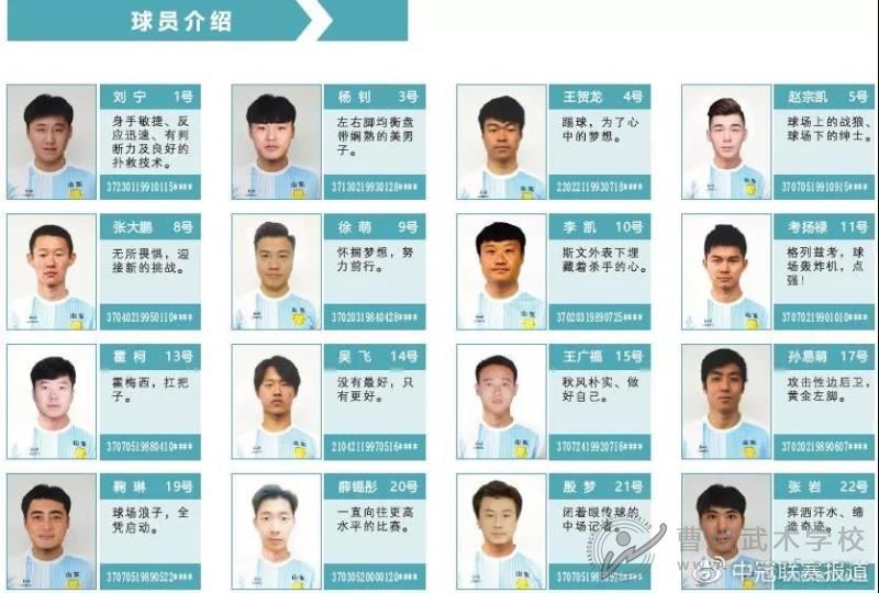 球员有来自青岛中能的李凯,鲁能的张大鹏、周泽豪,延边的王贺龙等。
