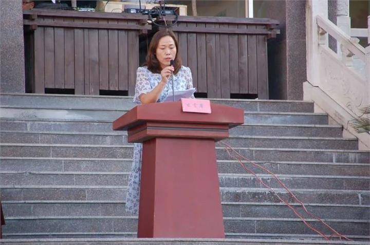 教师代表乔保玲老师发言,我们的教师队伍日渐壮大,又有一批高素质的教师加入我们的队伍,他们热爱教育、乐于奉献、以校为家,说他们是老师,不如说他们更像同学们的父母,在同学们成长的路途上无私地播撒阳光的雨露。