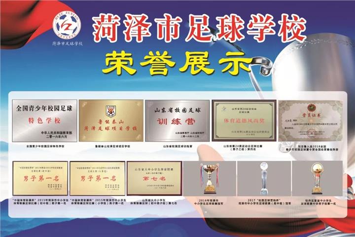 学校先后被教育部命名为“全国青少年校园足球特色学校”;被省教育厅授予“鲁能泰山菏泽足球项目学校”,是山东省第一批与鲁能合作的足校之一;被省教育厅命名为“山东省校园足球训练营”。足校与韩国K3联赛高阳足球俱乐部签订战略合作关系。
