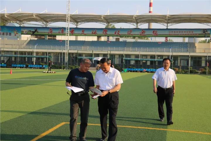 6月10日下午,菏泽市副市长高荣国、菏泽市体育局局长史长华、菏泽市体育局副局长赵学英一行在曹州武校校长贾其武陪同下到菏泽市足球学校调研,重点察看菏泽足校校园足球工作开展情况。
