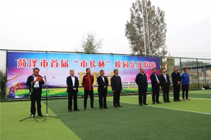 10月20日,由菏泽市教育局,菏泽市体育局主办,菏泽市经济开发区管理委员会,菏泽市曹州武术学校承办,菏泽市足球协会,菏泽市校园足球协会协办的菏泽市首届“市长杯”校园足球联赛在菏泽市曹州武术学校(菏泽市足球学校)举行开幕式。出席开幕式的领导有:
