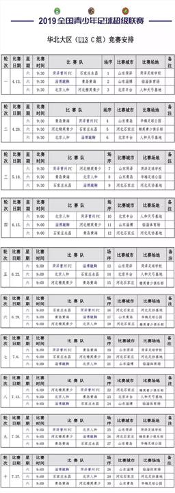 附:2019全国青超U13(C组)竞赛安排