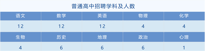 学校介绍 菏泽市曹州武术学校成立于1986年,是经菏泽市教育局、菏泽市体育局批准成立的全日制、寄宿制十二年一贯制学校,学校集小学、初中、高中于一体,军事化管理。学校坐落于菏泽市鲁西新区,在校师生近万人,分为普通高中部和文武兼修部两个校区。普通高中部现有80个班级,学生4000余名。近年来与菏泽一中合作办学,普通高中部与菏泽一中同步教学,进而实现教育资源和教育理念共享,积极探索有效教学改革,逐步形成了“四环节有效教学”模式,教育教学规模不断扩大,教育质量逐步攀升。学校拥有一支专业过硬、锐意进取的师资队伍,因事业发展需要,现诚聘优秀教师加盟。 普通高中招聘学科及人数 招聘对象及条件 1、遵纪守法,热爱教育事业,身体健康,师德高尚,有良好的专业基本功,具有奉献精神、创新意识和合作协调能力。 任职待遇 1、教师年薪7-15万(五险),薪资由基本工资+绩效工资+各种补贴组成。 应聘流程 1、发送简历到:czwxjwc@163.com。 地址:菏泽市牡丹区牡丹南路885号 联系电话: 菏泽市曹州武术学校普通高中部 2024年1月