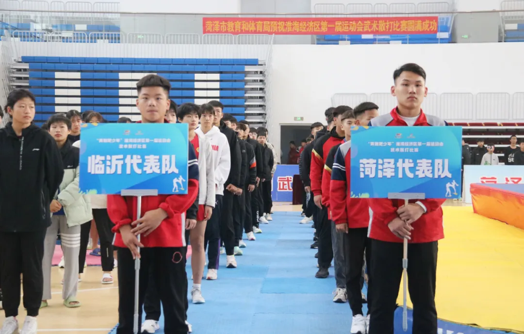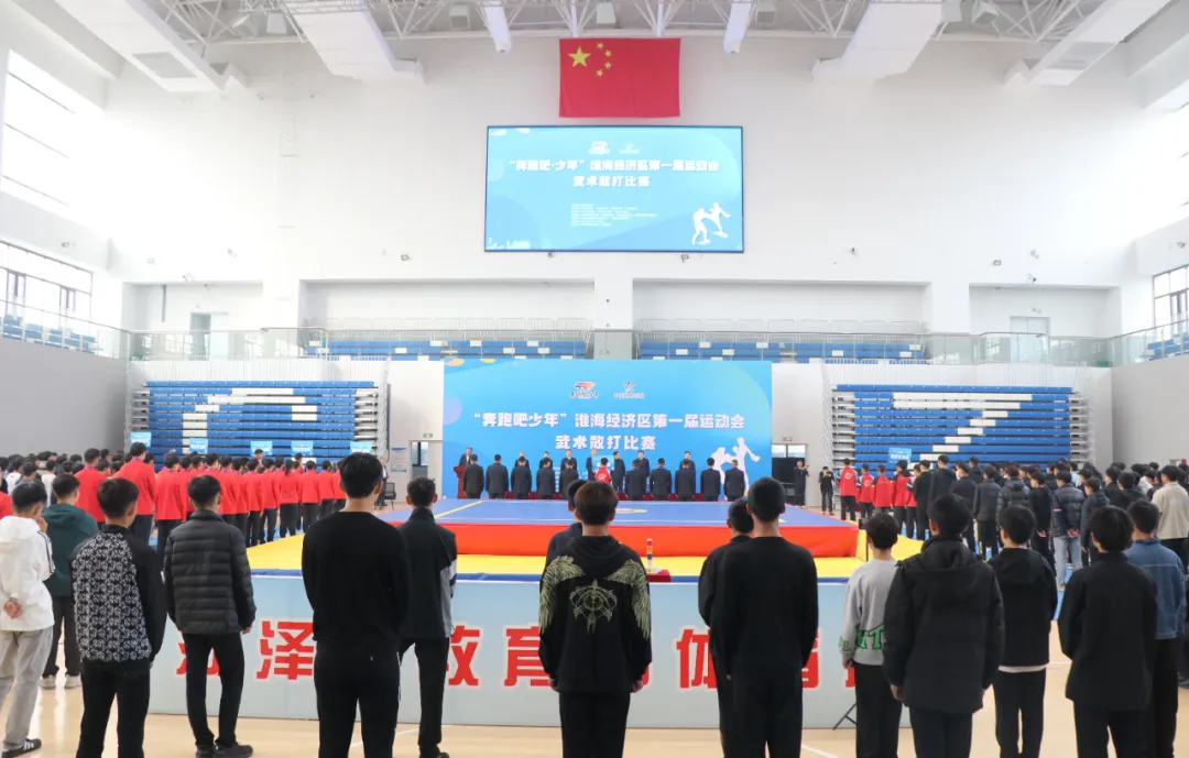 10月31日,由国家体育总局指导,江苏省体育局、山东省体育局、河南省体育局、安徽省体育局主办,菏泽市人民政府、徐州市人民政府、商丘市人民政府承办,菏泽市教育和体育局、徐州市体育局、商丘市教育体育局、菏泽鲁西新区管理委员会协办,菏泽鲁西新区教育体育服务中心和菏泽市曹州武术学校为执行单位的的“奔跑吧·少年”淮海经济区第一届运动会武术(散打)比赛开幕式在菏泽市曹州武术学校(人民路校区)举行。 本次比赛历时5天,分男女组共41个级别的比赛,来自淮海经济区8个地市的代表队、近300名运动员参赛。比赛旨在加强淮海经济区核心区城市间的交流合作,助力淮海经济区中心城市高质量发展。 山东省武术院副院长张海洋,徐州市体育局党委书记、局长靖飞,菏泽市教育和体育局党组书记史长华,徐州市体育局党委委员、副局长许慧慧,徐州市体育局四级调研员李化龙,菏泽市教育和体育局竞技体育科科长李震,菏泽鲁西新区教育体育服务中心副主任沙志强,菏泽鲁西新区教育体育服务中心教育体育工作室副主任郝登强,菏泽市曹州武术学校董事长贾其武出席开幕式。参赛各单位的运动员、教练员、领队以及本届比赛的裁判员参加开幕式,开幕式由菏泽教育和体育局党组成员、副局长王奉勇主持。 沙志强致欢迎辞。他表示,淮海经济区第一届运动会是加强淮海经济区核心区城市间的交流合作、助力淮海经济区中心城市高质量发展的一次体育盛会,对密切区域内兄弟城市之间经济文化交往具有重要意义。他指出,本届散打比赛为运动健儿们提供一个交流和切磋的平台,必将对苏鲁豫皖4省8市武术散打竞技水平的提高,发挥重要的推进作用;对培养和选拔淮海经济区武术散打后备人才,也将产生积极的促进作用。他希望运动员们发扬现代奥林匹克精神和中华传统武德,赛出水平,赛出风格,认真切磋、积极交流、互相学习、共同提高,圆满完成比赛任务,推动淮海经济区武术散打水平再上新台阶。 菏泽素享“武术之乡”美誉,武术文化氛围浓厚,近年来立足“武术之乡”资源优势,创新性实施“武术+”跨项选材发展模式,全市体育事业实现快速平稳发展,史长华在开幕辞中提到。他表示,本次比赛的成功举办,来自淮海经济区各城市优秀武术运动员同台竞技,促进武术文化传播和交流,共同为淮海经济区体育事业协同发展注入新的力量。他承诺将全力以赴创造良好的比赛和观摩环境,为本次比赛的举办保驾护航! 运动员代表姚法旺、裁判员代表贾伟振宣誓 徐州市体育局党委书记、局长靖飞宣布“奔跑吧·少年”淮海经济区第一届运动会武术散打比赛开幕,随着开幕式的圆满结束,比赛正式开始。 本次比赛不仅是一次体育竞技的盛会,更是一次文化交流与融合的契机。通过比赛,将进一步推动淮海经济区各城市之间的交流合作,促进武术文化的传承与发展,为淮海经济区体育事业的繁荣发展贡献新的力量。我们期待,在全体运动员、裁判员、教练员以及工作人员的共同努力下,本次比赛能够取得圆满成功,为淮海经济区体育事业的发展写下浓墨重彩的一笔。