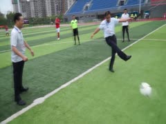 开赛前,菏泽市体育局党组书记、局长史长华在菏泽曹州足球俱乐部总经理王文科的陪同下冒雨来到赛场观看球员们热身运动。然后与单县人民政府副县长汲永亮同志、单县体育服务中心主任蔡方飚同志一同来到球员休息室为球员们加油鼓劲。