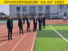 3月27日,菏泽市体育局党组书记、局长史长华带队到我校调研“武术+足球”开展情况,实地视察了所有队伍的训练情况,并在会上听取了“武术+足球”的施展工作,就七月份赴阿根廷参加“国家青年人才培养计划”工作进行了安排部署。市体育局党组成员、副局长王奉勇、竞训科长李振、办公主任尚斌、我校校长、分管领导与足球项目足球教练与武术教练参加了活动。